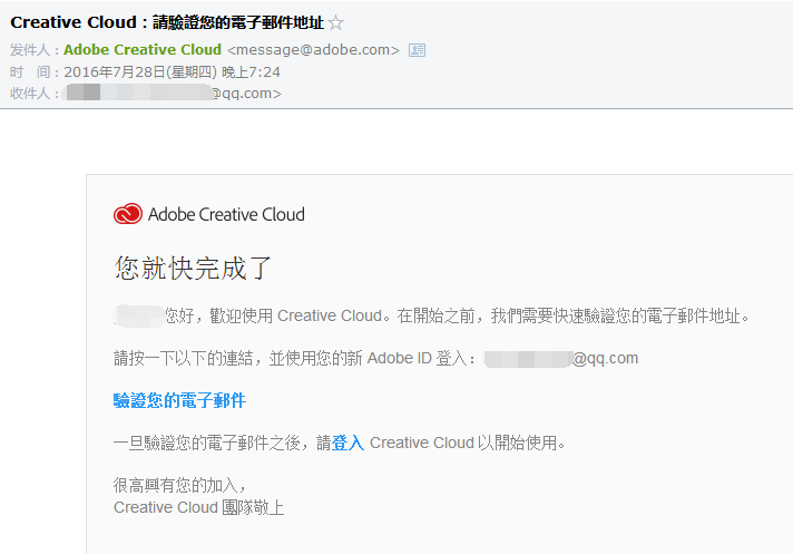 注意,填郵箱的時(shí)候多少認(rèn)真點(diǎn),別以為Adobe好忽悠,隨便給個(gè)郵箱地址完事,ID是需要郵箱認(rèn)證的。