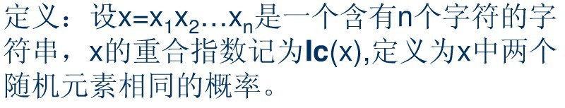 Σ(fi * (fi-1))/N(N-1) :fi 代表樣本中某個字母出現(xiàn)的比率,N代表字母出現(xiàn)在樣本中的個數(shù)