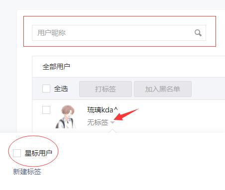 如果用戶太多了 可以利用上面的搜索功能 點(diǎn)擊 無標(biāo)簽即可分組