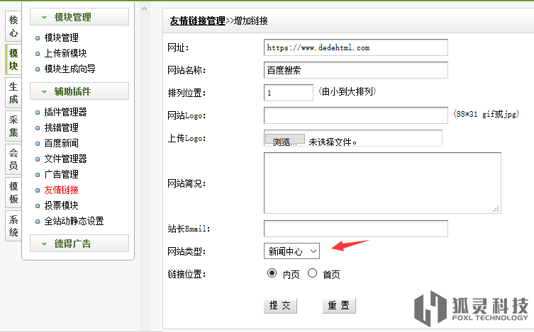 后臺-模塊-友情鏈接,網(wǎng)站類型管理,添加跟欄目一樣的名稱,前臺公共底部模板里用dede:sql根據(jù)當(dāng)前欄目名稱調(diào)用與友情鏈接網(wǎng)站類型名稱一樣的友情鏈接出來