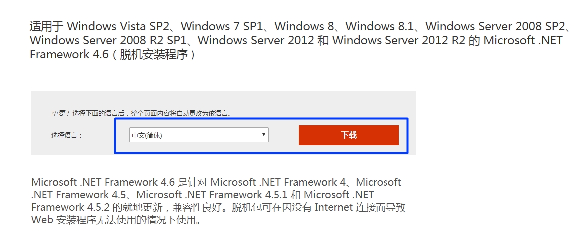 打開下載網(wǎng)址Microsoft .NET Framework 4.6