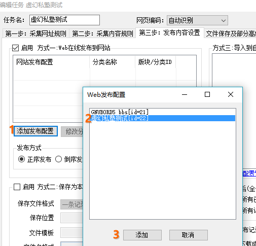 選好后,點(diǎn)擊發(fā)表配置測(cè)試