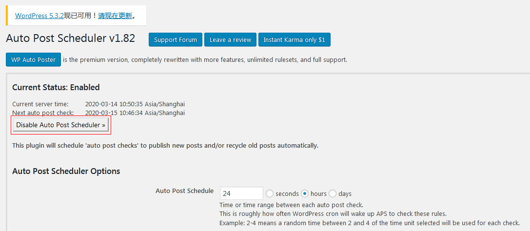 然后點(diǎn)一下那個(gè)“enable Auto Post Scheduler”就可以了。