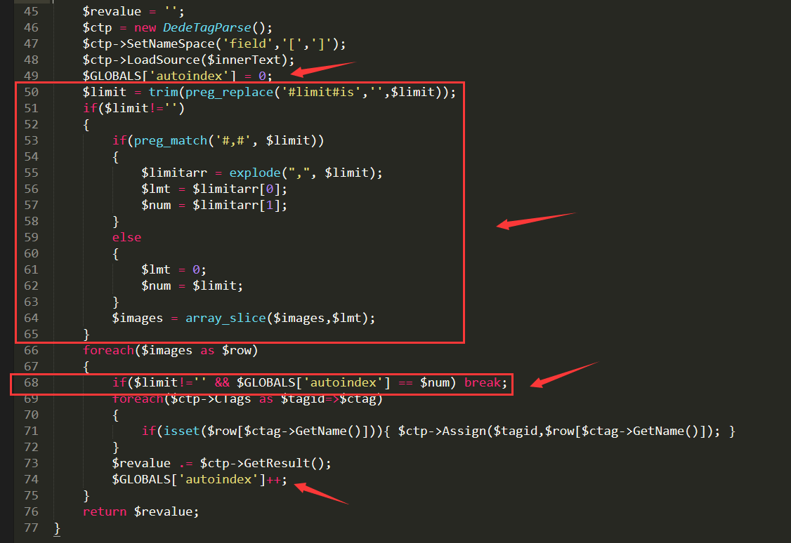 { if(preg_match('#,#', $limit)) { limitarr = explode(",", $limit);