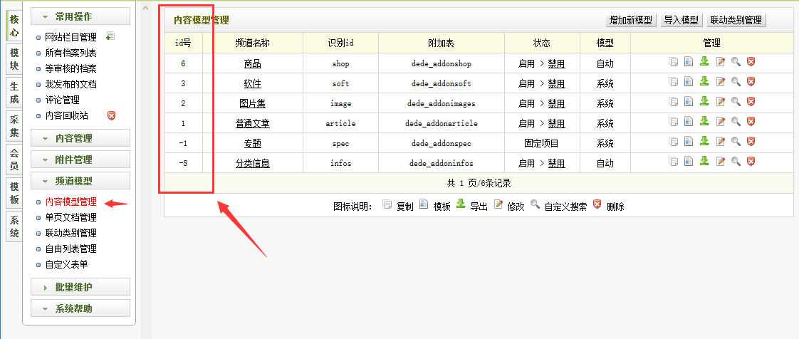 后臺(tái) - 核心 - 頻道模型 - 內(nèi)容模型管理