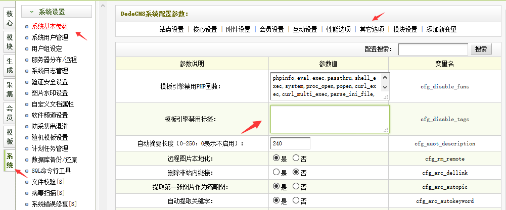 2、后臺(tái) - 系統(tǒng) - 系統(tǒng)設(shè)置 - 系統(tǒng)基本參數(shù) - 其他選項(xiàng) - 禁用模板標(biāo)簽 ,把php刪除后保存。