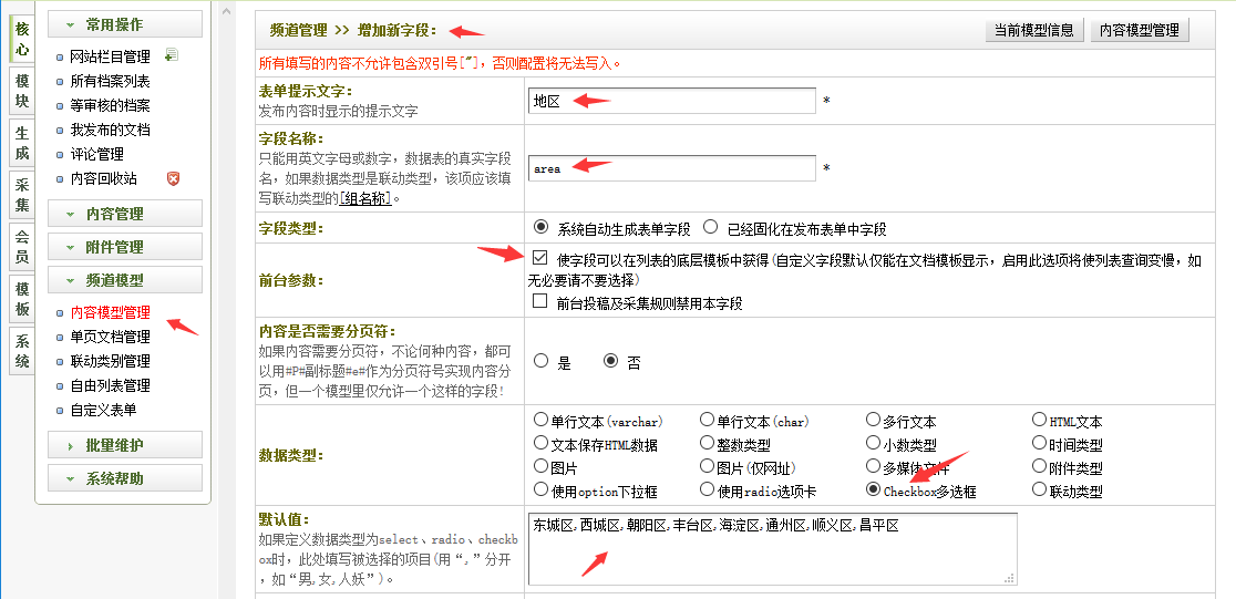 3、后臺(tái) - 核心 - 頻道模型 - 內(nèi)容模型管理